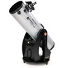 Celestron has reinvented the Dobsonian telescope with StarSense Explorer—the first Dobsonian that uses your smartphone to analyze the night sky and calculate its position in real-time. This large-aperture Celestron StarSense Explorer is ideal for serious beginners, thanks to the app's user-friendly interface and detailed tutorials. It's like having your own personal tour guide of the night sky. The large aperture will ensure that you won’t outgrow the telescope as you continue on in your astronomical adventures.Dock, Launch, ExploreLeave complicated star charts, imprecise planetarium apps, and computerized mounts behind. With StarSense Explorer, locating objects has never been easier, faster, or more accurate. Within minutes of setting up the telescope, you'll be navigating the sky with confidence. Simply place your phone in the unique StarSense dock and launch the StarSense Explorer app.After aligning your phone to the telescope's optics (a quick and easy procedure), StarSense Explorer generates a list of celestial objects currently visible. Make your selection and arrows appear on-screen, guiding you as you move the telescope. When the object is ready to view in the eyepiece, the bullseye turns green. As you observe, listen to hundreds of audio descriptions and view detailed information about thousands of objects within the app’s robust database.High-Quality Altazimuth BaseAn ultra-stable Dobsonian base provides a sturdy foundation for StarSense Explorer. It features large diameter altitude bearings with variable tensioning, Teflon azimuth bearings, and braces on the side panels for extra stability (unlike most 10-inch Dobsonian bases). The altitude bearings provide a smooth up-and-down motion while the integrated altitude brake system allows you to adjust the tension along the altitude axis for smoothest motion even with slight imbalances. The panning knob on the telescope tube provides an ergonomic grip so you can precisely point the telescope without introducing heat from your hands into the optical system. As celestial objects appear to drift across the night sky, you'll be able to easily follow them with minor adjustments to the telescope’s position.Dazzling Views with High-Quality OpticsWith a large 10-inch Newtonian reflector optical tube, this telescope has enough light-gathering ability to bring out impressive detail in celestial objects while remaining remarkably portable. You can expect sharp, bright views of Jupiter's four Galilean moons, its cloud bands and Great Red Spot, the rings of Saturn, the gaseous glow of the Orion Nebula, dust lanes in the Lagoon Nebula, and our neighbor galaxy, Andromeda. Compared to the StarSense Explorer DX 130 AZ, the 10-inch Dobsonian has 240+% more light gathering area, providing better views of faint objects.All mirror surfaces are coated with our XLT optical coatings to visibly increase contrast and light throughput for brighter views. With XLT, you'll be able to discern subtle details while viewing the Moon and planets, as well as faint galaxies and nebulae. The mirrors are made of low-expansion optical glass, which helps ensure the best images under changing environmental conditions.This telescope also comes with a high-quality 2-inch Crayford focuser. The Crayford design provides precise and smooth movements without focus shifting. It also includes a 2-inch to 1.25-inch adapter and a 2-inch extension tube, so you can use virtually any 1.25-inch or 2-inch telescope eyepiece with your StarSense Explorer Dobsonian. The focuser also features a thumbscrew so you can lock in the sharpest focus.