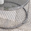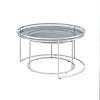Breathe in success and exhale fierceness with this set of luxury nesting tables. The ring frames are designed to play a glamorous illusion. Simply tuck the striated glasstop table under the larger, and voila! you just saved space! The set gleams in the light and offers a rich, sophisticated ambiance brimming with sparkle.