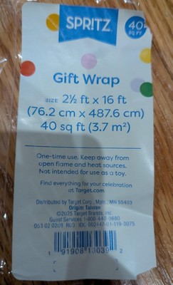 A: The wrapping paper measures 192 inches by 30 inches, providing ample coverage.