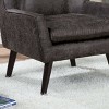 The placid grace of mid-century modern style peeks through the design of this accent chair with its espresso finished tapered and flared legs. It features button-tufted linen upholstery that has a soft touch with a welted untroubled rim. The barrel-shaped seat with flared arms caresses you in a calming embrace with a semi-firm comfort.