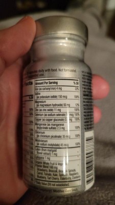 Packaged in an aluminum bottle that protects product potency - the first leading multivitamin available in an aluminum bottle. Both the bottle and cap are recyclable and meet Target Zero standards. Target Zero: Packaging switched from plastic to paper, aluminum, steel, or glass