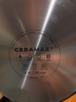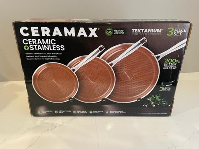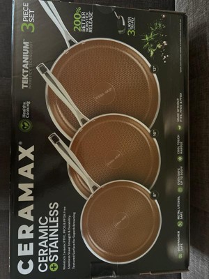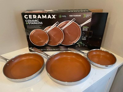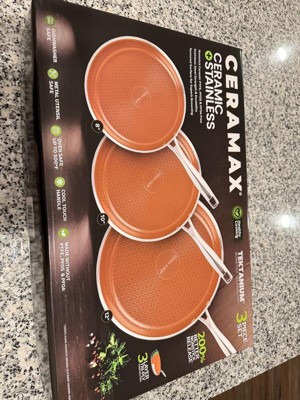 Ceramax 3 Pc Ceramic Stainless Steel Nonstick Copper Fry Pan Set 8” 10” 12” Triply Induction Cookware