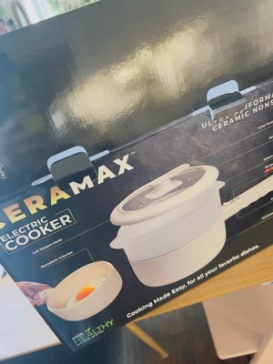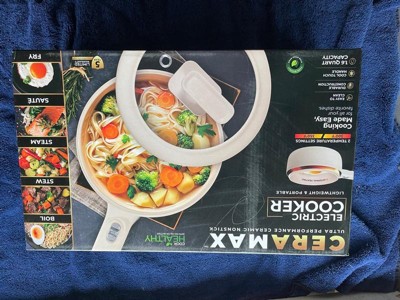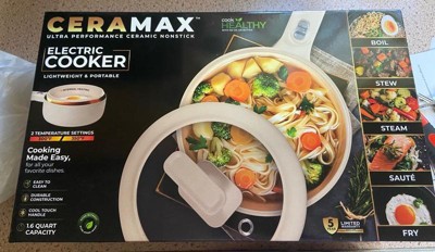 The Ceramax Electric Hot Pot is designed for convenience and versatility, making it ideal for small spaces such as apartments, dorms, RVs, or offices. With two temperature settings—300°F and 350°F—you can adjust the heat for precise cooking, whether you're sautéing, boiling, or steaming. The sleek matte white finish gives it a modern touch, while the stay-cool exterior ensures safe handling. Included with the hot pot is a steamer insert attachment, adding even more functionality to this compact powerhouse. Made without PFOA, lead, cadmium, and other harmful chemicals, the Ceramax Electric Hot Pot is a safe, efficient, and stylish addition to any kitchen.