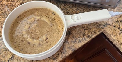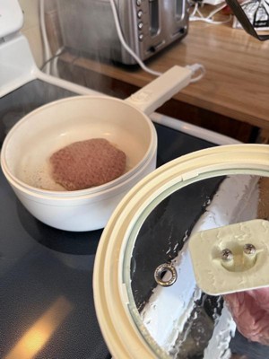 [This review was collected as part of a promotion.] This is such a concevient appliance! It’s coated nonstick (unsure about what that entails, I think we all know nonstick is sketchy), but with it being nonstick, that means any food can cook inside with an easy clean up. It plugs into any outlet. Comes with a glass lid with a hold for letting steam out. The part I don’t like is that the straining/steaming compartment is plastic. We are in 2024 - we don’t need to be using plastic to heat! Because of this I knocked it down 1 star. Other than this, I am looking forward to using this, primarily for my younger child to learn how to cook! Safer than on the stove. Also a great attractive device for cooking content creators!