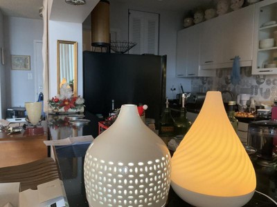 A: Hello JenMExx - Thank you for your Interest! The Large diffuser in ceramic cutout design has a variety of light settings giving it an aesthetic appeal. It also has a no light feature where diffuser runs without the lights being on. Hope this helps! - Eram