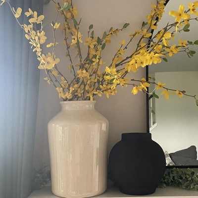 Love this vase for spring and summer faux florals. I got the 9" vase and 3 stems fit perfectly. I also love the glossy detail on this vase.