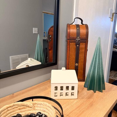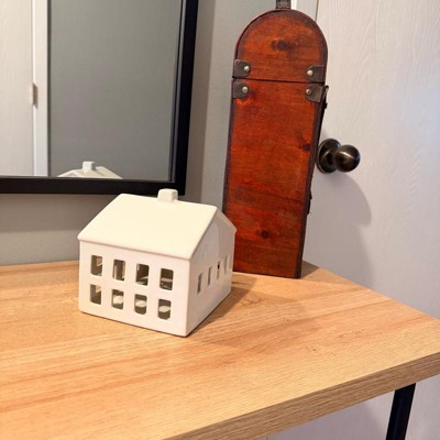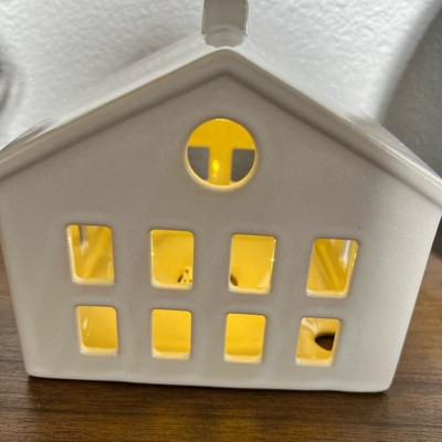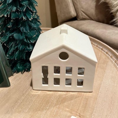 [This review was collected as part of a promotion.] This ceramic house is a nice addition to holiday decor. The color is neutral so it would go with any holiday decor. I also love the little tea light bulb inside for a cozy glow during the colder months! The size of the house itself is a little sad, as you can see on a 12x12 shelf, so I’d definitely recommend multiple houses to create a village or a riser to give it some height. I received an incentive to write this review.