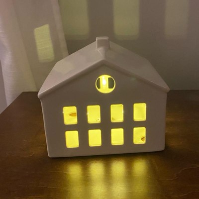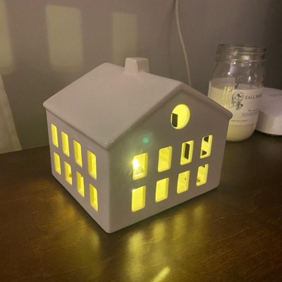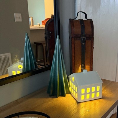Brighten up your festive setup with this LED Cottage House from Threshold™. Made of ceramic, this cottage house in a white hue feature a chimney and has multiple cutout windows that cast a soft, warm glow, and it's powered by the included battery. You can place this 5.04-inch house on the mantel or any other flat surface to bring a vintage seasonal vibe to your space.
