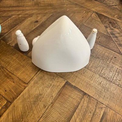 [This review was collected as part of a promotion.] This is a simple, white and gold glossy ceramic nativity set. I took a picture from the back so you could see that it is completely white in the back in the same finished so if it’s sitting on a sofa table, you can see it from both sides. The pieces are lightweight. It’s dirty enough that they’re not exactly hollow. I also appreciate that the box it is in is perfect storage and the pieces fit into the cardboard very well for safe storage in the non-holiday months. I received an incentive to write this review.