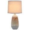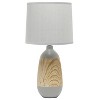 Check out this beautiful upgrade to your traditionally designed 18.5" table lamp! With a horizontal wooden print across a gray oblong base, this lamp satisfies your basic lighting needs with the right pop of decor you're looking for. A matching gray tapered fabric shade tops off this contemporary look, making it the perfect piece to add to your decor!