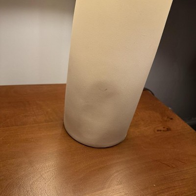 Beautiful ceramic lamp. Been looking for a ceramic minimalist type bedroom lamp but didn’t want to spend $300. Gives CB2 Crate & Barrel vibes for a fraction. Heavy too. Love the texture on the ceramic. Very substantial lamp. Highly recommend. Love it!!