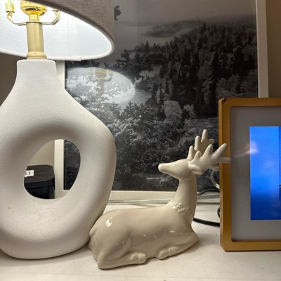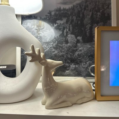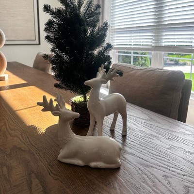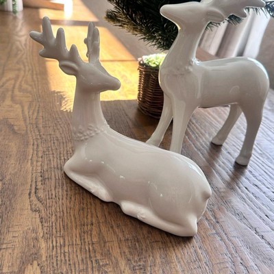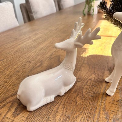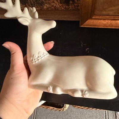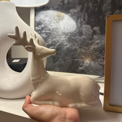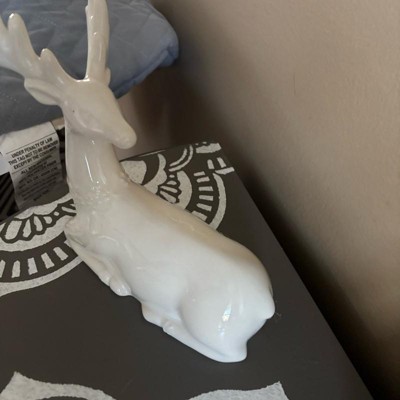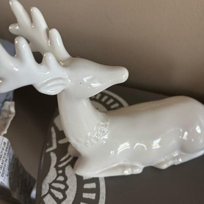 Add a touch of sophistication to your holiday decor with this Sitting Deer from Threshold™. Made of ceramic, this figurine showcases a white deer in sitting position with embossed detailing around the neck for an elegant look. Designed for indoor use only, this 6.54-inch deer makes the perfect addition to your mantel, bookshelf or any other flat surface.