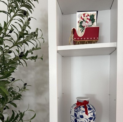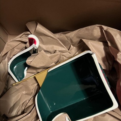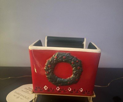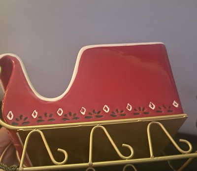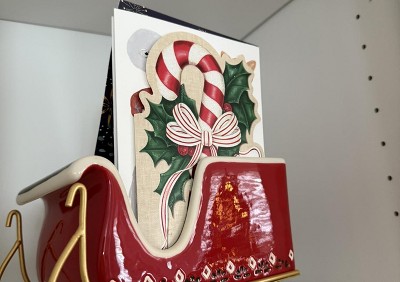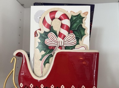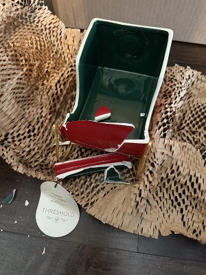 This Sleigh Holiday Card Holder from Threshold™ is a cute and practical addition to your seasonal decor. Made of ceramic, this holiday card holder features a red and green carriage adorned with festive prints and gold-tone runners for a shiny look. Suitable for indoor use only, you can place this 4.98-inch holder on the mantel or tabletop to cheerfully display your holiday cards.