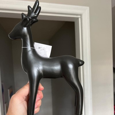 Give your holiday decor a unique woodland touch with this Ceramic Standing Deer Christmas Animal Figurine from Wondershop™. Made of ceramic, this black Christmas deer figurine adds elegance to your holiday display. Place this deer solo on a mantel, coffee table or console table or mix and match with other holiday figurines.