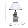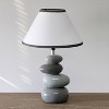 This creatively designed ceramic 14.7" table lamp features a stacked ceramic base in a few shades of light and dark gray paired with a matching gray fabric shade. A charming, inexpensive, and practical table lamp to meet your basic fashion lighting needs. Perfect for living room, bedroom, office, kids room, or college dorm.
