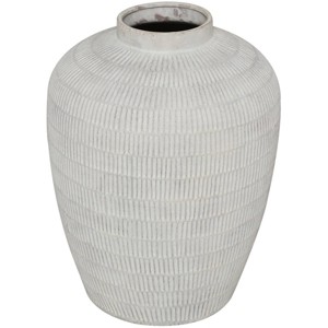 Olivia & May Ceramic Textured Vase with Linear Pattern Cream: Modern Amphora, Spot Clean, Tabletop Decor