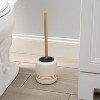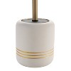 The modern shape and design of the Bath Bliss Ceramic Toilet Brush in White and Gold features a subtle finish that adds elegance to any bathroom. The 360-degree brush shape helps reach those hard to clean places. The handle has a drip guard lid that prevents dirty water from splashing onto your hand and then acts as a lid to conceal the brush inside the holder. When done using, store the brush away in the holder to keep your bathroom looking clean and modern. This short brush holder allows you to store the brush anywhere in the bathroom. No bathroom is complete without this brush and holder to keep your space clean and organized.