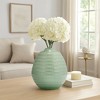 Product Name: 7" Ceramic Oval Vase - Contemporary Dark Sage Green Etched Stripe Decorative Table Vase Home or Office Decor Accent Flower Centerpiece Display Gift