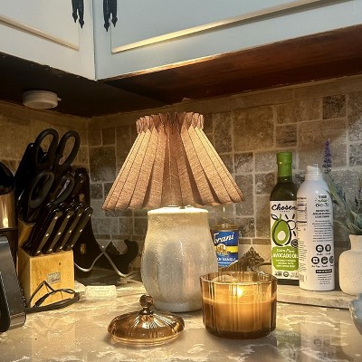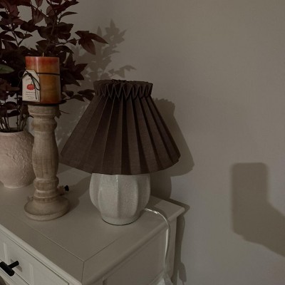 Ceramic with Brown Knife Pleat Shade Accent Table Lamp Sour Cream - Hearth & Hand™ with Magnolia