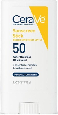 CeraVe Mineral Sunscreen Stick SPF 50 I really like this sunscreen stick for quick, no-mess protection. It’s gentle on my sensitive skin, doesn’t cause breakouts, and feels reassuring with its mineral SPF. The stick makes it super easy to swipe on my face, nose, and ears when I’m on the go. It can leave a slight white cast at first, but it blends in with a little effort. Overall, it’s a simple, dependable sunscreen I keep in my bag for everyday use.