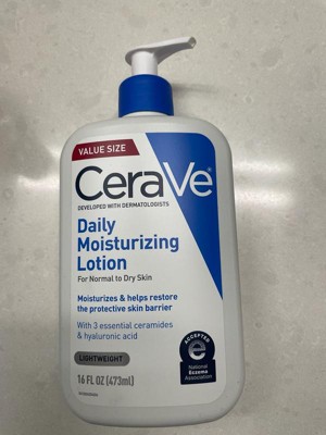 Developed with dermatologists, CeraVe Daily Moisturizing Lotion has a unique, lightweight formula that provides 24-hour hydration and helps restore the protective skin barrier with three essential ceramides (1,3,6-II). The formula also contains hyaluronic acid to help retain skin’s natural moisture. It has a smooth, light-weight texture that is absorbed quickly, leaving skin feeling smooth and hydrated, never greasy. Holds National Eczema Association (NEA) Seal of Acceptance. Fragrance-free, allergy-tested, oil-free and non-comedogenic (meaning it won’t clog your pores). Suitable for normal to dry skin, including sensitive skin, as a face moisturizer, body lotion and/or hand cream.