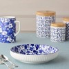 - Features a stunning blue and white floral design on the interior