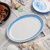 Add a touch of coastal elegance to your dining table with the Dockside Blue Oval Stoneware Platter. Measuring 16 x 12 inches, this beautifully designed platter features bold blue stripes on a crisp white background, creating a timeless look that complements any décor. Crafted from premium stoneware, it is built to last and is both microwave- and dishwasher-safe for your convenience. Perfect for serving an array of dishes, from appetizers to desserts, this platter is a versatile piece that makes entertaining effortless. Whether you’re hosting a casual get-together or a formal dinner, this Dockside Blue Oval Platter delivers style, durability, and functionality in one. Its elegant design also makes it an excellent gift for housewarmings, weddings, or any special occasion.