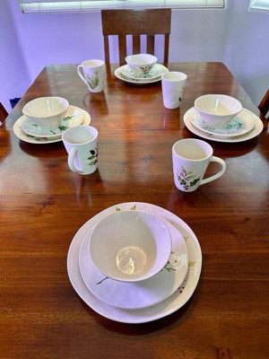 - Set contains 4 dinner plates, 4 salad plates, 4 bowls and 4 mugs