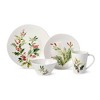 Bring artistic elegance to your holiday table with the Holly and Vines 16-Piece Stoneware Dinnerware Set. Featuring softly rendered artwork of holly leaves, pine sprigs, and red berries, each piece in this service for four is thoughtfully designed by skilled artists to capture the essence of winter’s natural beauty. Set against a crisp white background and finished with a subtle glaze, this collection blends timeless seasonal charm with a fresh, modern feel. The dinner plates, salad plates, bowls, and mugs work harmoniously to create a table that’s both inviting and festive. Perfect for Christmas entertaining or cozy winter meals, this stoneware set is microwave and dishwasher safe—making it practical for everyday use while maintaining its refined look. Whether gifted to a host or used to elevate your own holiday traditions, the Holly and Vines dinnerware set brings warmth, artistry, and joy to every gathering, from festive brunch to fireside cocoa.