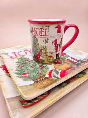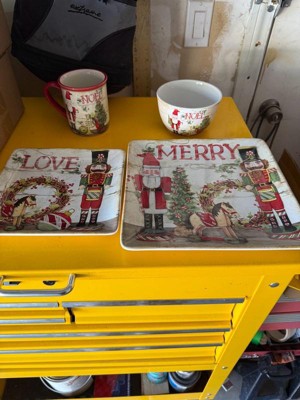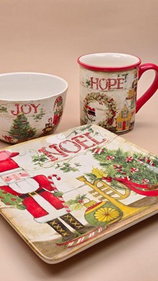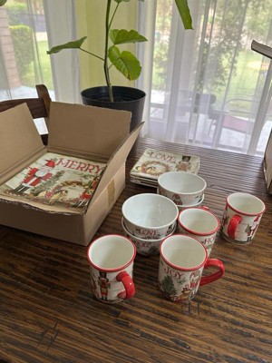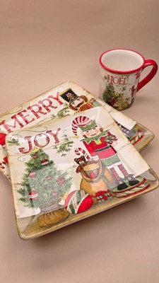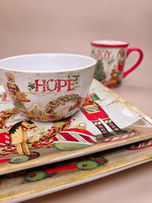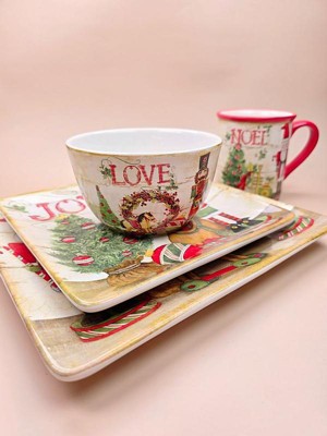 Step into a nostalgic holiday wonderland with the Nutcracker Parade 16-Piece Dinnerware Set. Crafted from durable ceramic, this charming Christmas dinnerware set features whimsical vintage artwork, from Santa Claus and nutcrackers to reindeer and classic holiday décor. Each piece showcases beloved holiday motifs and cheerful messages—JOY, HOPE, LOVE, NOEL—bringing heartwarming spirit to every meal. Designed for both festive flair and practical use, this ceramic set includes four dinner plates, four dessert plates, four mugs, and four bowls. The dishwasher and microwave-safe pieces combine timeless holiday elegance with everyday convenience. Whether you're hosting an intimate holiday meal or a festive gathering, the Nutcracker Parade set adds joy and tradition to your table. Perfect for holiday collectors, gift-giving, or anyone who loves a cheerful and nostalgic Christmas vibe.