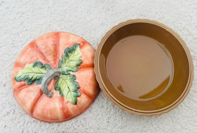 Serve your homemade pies in autumn-inspired elegance with the Harvest Fields 3D Pumpkin Covered Pie Carrier, a beautifully crafted ceramic pie dish with a sculpted pumpkin lid. Designed to be both functional and decorative, this 10.5-inch pie carrier is perfect for baking, storing, and transporting pies, quiches, and tarts for fall gatherings and holiday feasts. The detailed pumpkin-shaped lid with a hand-painted stem and leaves adds a festive touch, making this the ultimate statement piece for Thanksgiving and seasonal entertaining. Made from durable, high-quality ceramic, this pie carrier retains heat for even baking and keeps desserts fresh while the smooth glazed finish ensures easy cleaning. Whether you're baking a classic pumpkin pie for Thanksgiving, a warm apple tart for a cozy fall evening, or gifting it to a holiday host, this farmhouse-style bakeware makes every dessert feel extra special.
