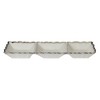 Present your favorite appetizers and snacks with unmatched elegance using the Regency silver 3 Section Tray. This beautifully designed 15" x 5.5" tray is perfect for hosting, enabling you to serve a variety of treats in style, from olives and nuts to an assortment of candies. Pair with other pieces of the Regency collection for a stunning presentation.