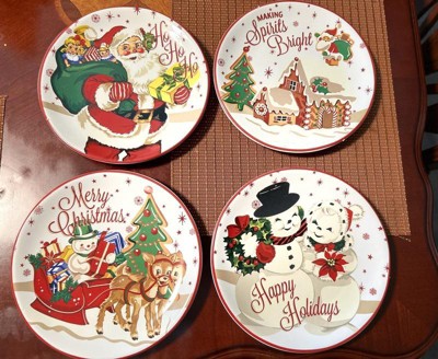 Certified International (Set of 4) 9" Santa's Retro Christmas Dessert Plates