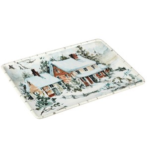 Nestle the essence of a serene winter's day into your home with the Winter's Frost Rectangular Platter. This 14in x 10in serving piece, designed by the illustrious Susan Winget, is a window into a rustic winter scene, featuring a cozy cottage blanketed in snow. It's the perfect backdrop for your holiday hors d'oeuvres or the centerpiece of a festive buffet. The platter's generous size is matched by its versatility, being dishwasher safe for easy cleaning after your gatherings. As a part of the Winter's Frost collection, it invites you to mix and match with other dinnerware and serveware, creating a captivating and coordinated holiday spread. This platter isn't just a serving piece—it's a gift that serves up a slice of winter wonder, making it an excellent choice for anyone looking to spread seasonal cheer.