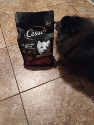 My dog loved this food, and couldn't get enough of it at meal times. He seemed to love the variety of having the tender pieces, as well as the crunchy kibble. Cesar may be a bit more expensive, but definitely worth it.