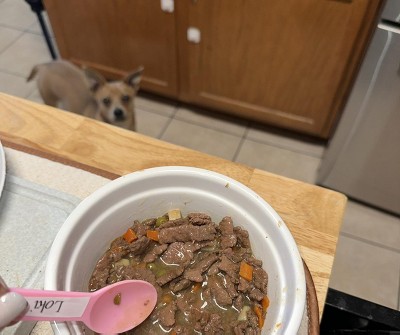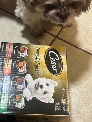 Dogs love the Cesar home delights variety box of 4 flavors 24 count! Has beef stew, hearty chicken and noodles, pot roast with spring vegetables and turkey green beans! Has good nutrition, smells very good, good small portions for small dogs! Thank you influenster!!