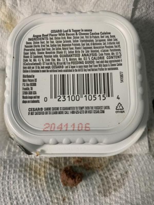 I bought the Cesar loaf and topper , Angus Beef Flavor with Bacon and Cheese ! As I was reheating it in my microwave I heard it pop and saw a spark ! Does your dog food contain any metal in it !