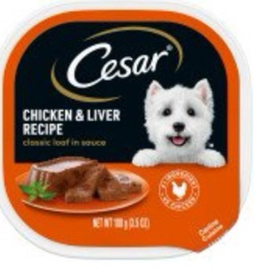 I purchased the Cesar dog food for my rescued red nose, Pitbull part Shar Pei. I know this is a tiny little pack of dog food, but I needed a dog food topper for her dry kibble. I bought her a 44 lb bag of lamb kibble from a different company, and she got extremely picky and did not want to eat it, so I decided to add some flavors. Thankfully, she has been eating all of her dish as long as I mix it with this chicken liver flavor. This is a easy open convenient little pack of dog food. I'm so glad I was able to find something that my dog will eat.