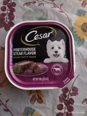 My dog really enjoys this Cesar Porterhouse Steak Flavor. Every time I open one, he gets super excited and finishes it fast. The texture is soft, the smell isn’t too strong, and it seems easy for him to digest. It’s perfect for a quick meal or as a special treat. I like that it’s convenient and my dog actually loves the taste.