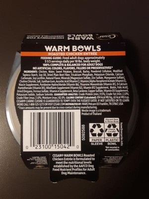 Cesar Warm Bowls Roasted Chicken Flavor Entrée Adult Wet Dog Food - 2.7oz