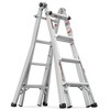 This adjustable ladder can be as an A-frame ladder, trestle-and-plank, an extension ladder, a staircase and 90-Degree ladder.