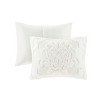 The Madison Park Viola 3 Piece Tufted Cotton Chenille Damask Comforter Set offers the perfect cottage touch to your bedroom décor. A tufted chenille damask design is beautifully displayed on the 100% cotton comforter and matching shams, for a soft shabby chic look. Machine washable for easy care, this bedding set is OEKO-TEX certified, meaning it does not contain any harmful substances or chemicals to ensure quality comfort and wellness. Due to the nature of the chenille fabric, some shedding will occur naturally in the first 3-4 washes.