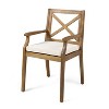 Seating Piece 1: Patio Arm Chair: 35.5 inches (H) x 21.25 inches (W) x 23.5 inches (D), 18 inches (seat depth)