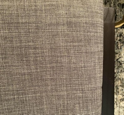 The top portion of the seat is twisted so that one side lies flat and the other side is twisted up 3/4 of an inch and will not lie flat. Also the fabric covering the top is a type of tweed and is twisted so that grain runs sideways not straight up and down.