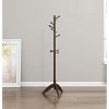 This elegant freestanding coat rack combines timeless design with practical functionality for your entryway. Crafted from premium solid wood with a rich dark brown finish, it features 11 sturdy hooks across 7 tiers to organize coats, hats, and accessories. The stable tripod base provides reliable support while maintaining a slim 17.5" footprint, perfect for hallways, mudrooms or offices. Simple assembly required for this durable storage solution that keeps your space tidy and stylish.