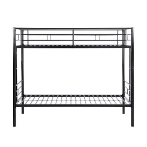 This twin over twin bunk bed combines modern style with functionality, offering a space-saving solution for any bedroom. Crafted with a durable steel frame, it ensures stability and quiet use, with a high weight capacity for safety. The easy-to-assemble design includes all necessary tools and instructions, and the bed does not require a box spring, supporting all types of mattresses. Ideal for maximizing space in any home, it’s a practical and stylish addition to your child’s room.