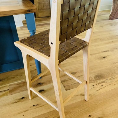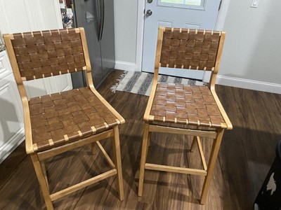 A: The barstool has a woven texture that adds a chic and breezy look to your decor.