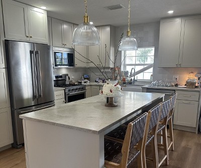 I really love the look of these barstools. They were fairly easy to assemble. They are pretty comfortable. If you have kids, they aren’t the easiest to wipe down but it’s manageable.