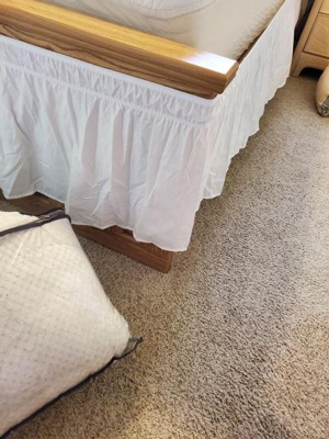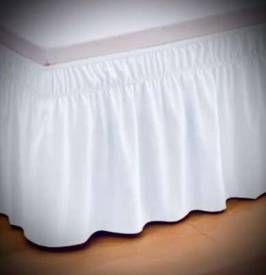 [This review was collected as part of a promotion.] The Ruffled Elastic Wraap Around bedskirt was very easy to put on the bed. It has fabric on 3 sides and has elastic on the side toward the top of the bed. It has a 15 inch drop so it was perfect for the bed I put it on because it is an elevated bed. It makes the whole bedroom look put together. The fabric is soft and the color is a true white.