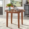 Versatility allows you to expand seating in your dining space with the Chadwick Drop Leaf Dining Table from Buylateral. Perfectly sized for a breakfast nook or smaller area, the two drop leaves easily extends for guest or lowers when you need to maximize space. Each individual leaf is 7 inches, expanding the table width to a 40-inch diameter. Constructed of solid rubberwood in a wlanut finish, this table easily complements almost any style of room décor.